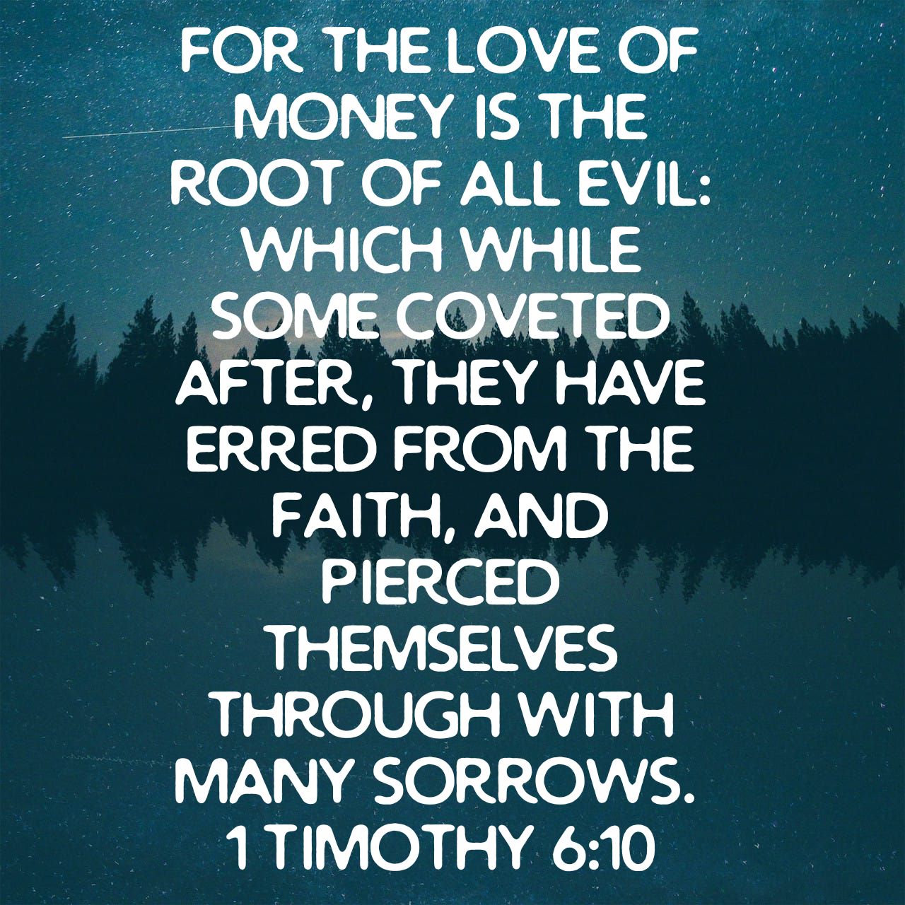 For The Love Of Money Is A Root Of All Kinds Of Evils 1 Timothy 6 10a Esv Evil Quotes God The Father Evil